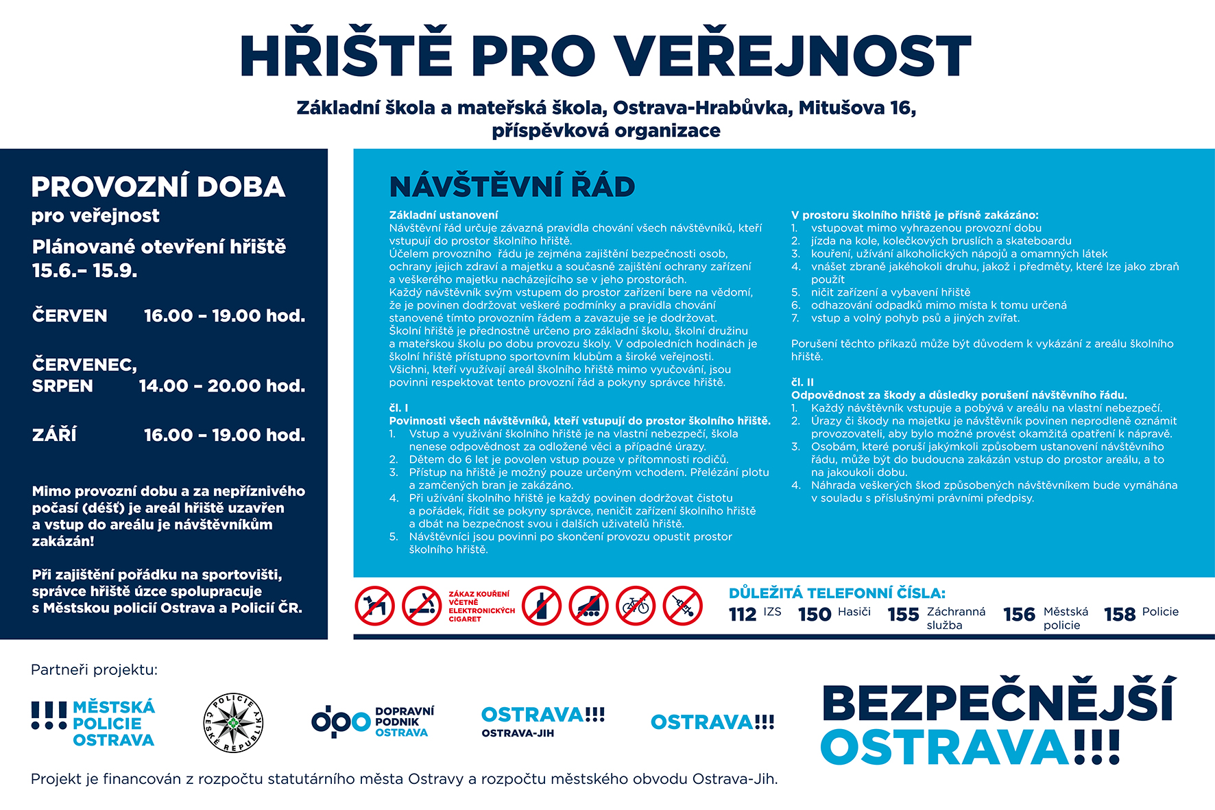 Hřiště s garantovanou kvalitou provozu otevřené veřejnosti v rámci projektu Bezpečnější Ostrava.